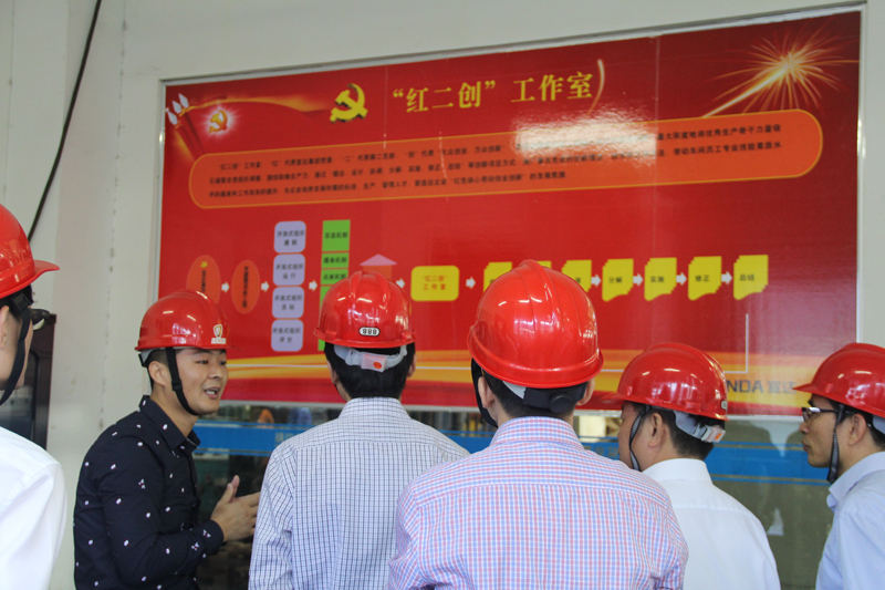 在完美online(中国)党建文化展厅中,党委书记孙亮就完美online(中国)党建需求库工程为调研队伍作了详细讲解。随后带领他们到生产车间参观了2015年下半年正在开展的党建需求库子项目之一的“红二创”工作室,“红二创”工作室里流程化的党建工作布局和明确的工作分工及相关工作规范化、标准化赢得了参观队伍的一致好评。