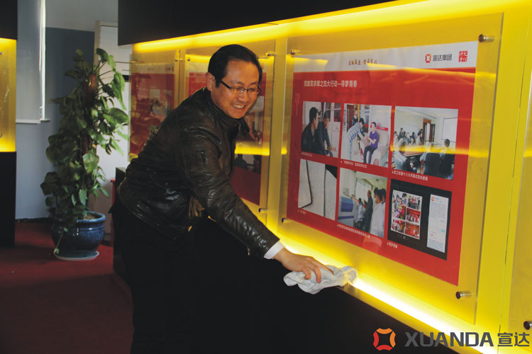 党建文化馆内,党员和积极分子们有的擦展柜,有的擦玻璃,有的提水,有的拧抹布……一个个有说有笑,神采飞扬。不多时,就将个展馆清理得干干净净,清清爽爽。
