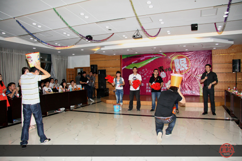 “请大家起立,男生女生面对面而站,再伸出你们的双手,手掌平行而放……”第一个游戏《看谁反应快》在主持人的带动下欢快地进行了。接下来,“传真机”、“抱抱团”、“心有灵犀一点通”、“抛绣球”、“全城热恋”等游戏更是让台上的玩得尽兴,台下的看得捧腹大笑,本来你不认识我,我不认识你的一群男女,一下子互相熟悉起来,心与心的距离好像一下子拉近了好多。